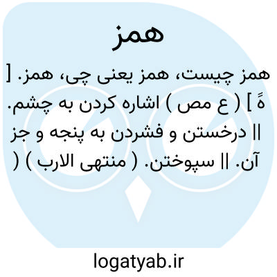 همز. [ هََ ] ( ع مص ) اشاره کردن به چشم. || درخستن و فشردن به پنجه و جز آن. || سپوختن. ( منتهی الارب ) ( اقرب الموارد ). || عیب کردن. ( منتهی الارب ). ||. همزه آوردن در کلمه. ( منتهی الارب ) ( از اقرب الموارد ). || دور کردن. ( منتهی الارب ). || زدن. || گزیدن. || شکستن. || بر زمین زدن. ( منتهی الارب ) ( از اقرب الموارد ). || همزالشیطان؛ دیوانگی، زیرا که از اغوای شیطان سر زند. ( منتهی الارب ). وسواس انداختن شیطان در دل. ( اقرب الموارد ). || حرف را به هم کردن. ( تاج المصادربیهقی ). || ( اِ ) خطره ای که شیطان در دل اندازد. ج، همزات. ( منتهی الارب ). رجوع به همزة شود.