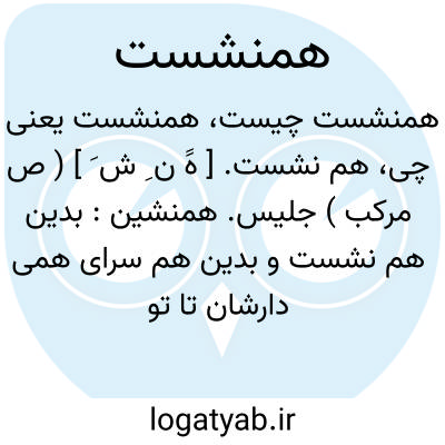 همنشین، همدم: بشوی ای خردمند از آن دوست دست / که با دشمنانت بُوَد هم نشست (سعدی: ۱۷۲ )، مهتران چون خوان احسان افکنند / کهتران را هم نشست خود کنند (خاقانی: ۸۸۲ ).