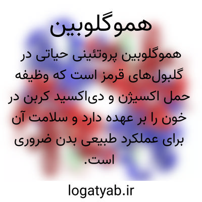 (اسم )ماد. رنگی قرمز تیر. موجود در گلبولهای قرمز خون که از دو ماد. یکی پروتئیدی بنام گلوبین که بیرنگ است و دیگر همو کروموژن که ماد. رنگی ( قرمزتیره ) آهن داراست تشکیل شده است. همو کروموژن در حقیقت یک هماتین تغییر شکل یافته است. هموگلوبین در حیوانات مختلف بصورت بلورهای مختلف متبلور میشود تبلور هموگلوبین خون انسان بشکل منشورهای لوزی شکل است. مقدار هموگلوبین خون در شخص طبیعی در حدود ۱۳٠ گرم در لیترست. هموگلوبین میتواند با اکسیژن ترکیب شود و در این صورت ترکیب نا پایداری بنام اکسی هموگلوبین میدهد و این اکسی هموگلوبین همینکه بانساج رسید اکسیژن خود را از دست میدهد و بصورت هموگلوبین خالص بر میگردد هر صد گرم هموگلوبین خالص میتواند ۱۴٠ سانتیمترمکعب اکسیژن را جذب نماید.هموگلوبین میتواند با اکسید دو کربن ( بخار زغال ) ترکیب شود و تولید کربوکسی هموگلوبین نماید که بسیار ثابت است و چون عمل تنفس بااین ترکیب مختل میشود لذا اکسید دو کربن از گازهای سمی بسیار خطرناک است انیدرید کربنیک موجود در انساج برخلاف تصور با هموگلوبین ترکیب نمیشودبلکه بصورت ترکیبات ناپایدار( بیکربتات دو سود در پلاسما و بی کربنات دوپتاس درگلبولها ) ذخیره میشود و در مجاور هوای حبابهای ریوی این ترکیبات ناپایدار تجزیه میشود.
