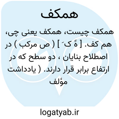 هم کف. [ هََ ک َ ] ( ص مرکب ) در اصطلاح بنایان، دو سطح که در ارتفاع برابر قرار دارند. ( یادداشت مؤلف ).
