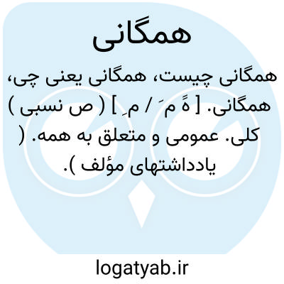 همگانی. [ هََ م َ / م ِ ] ( ص نسبی ) کلی. عمومی و متعلق به همه. ( یادداشتهای مؤلف ).