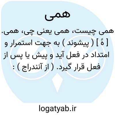 همی. [ هََ ] ( پیشوند ) به جهت استمرار و امتداد در فعل آید و پیش یا پس از فعل قرار گیرد. ( از آنندراج ):