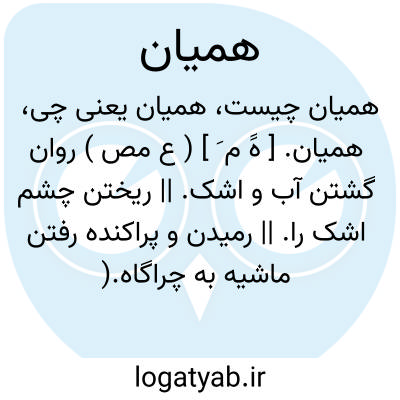 همیان. [ هََ م َ ] ( ع مص ) روان گشتن آب و اشک. || ریختن چشم اشک را. || رمیدن و پراکنده رفتن ماشیه به چراگاه.( منتهی الارب ) ( اقرب الموارد ). رجوع به هَمْی شود.