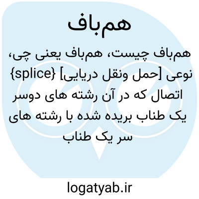 {splice} [حمل ونقل دریایی] نوعی اتصال که در آن رشته های دوسر یک طناب بریده شده با رشته های سر یک طناب به رشته های سر طناب دیگر در یک راستا به هم بافته می شود