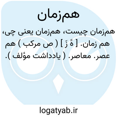 هم زمان. [ هََ زَ ] ( ص مرکب ) هم عصر. معاصر. ( یادداشت مؤلف ).