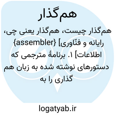 {assembler} [رایانه و فنّاوری اطلاعات] 1. برنامۀ مترجمی که دستورهای نوشته شده به زبان هم گذاری را به زبان ماشین ترجمه می کند 2. زبان برنامه نویسی هم گذاری
