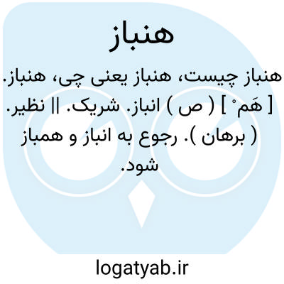 هنباز. [ هَم ْ ] ( ص ) انباز. شریک. || نظیر. ( برهان ). رجوع به انباز و همباز شود.