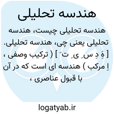 هندسه تحلیلی. [ هَِ دِ س ِ ی ِ ت َ ] ( ترکیب وصفی، اِ مرکب ) هندسه ای است که در آن با قبول عناصری، محاسبات جبری و آنالیزی داخل هندسه می گردد.