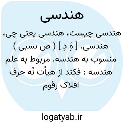 ( صفت ) منسوب به هندسه. یا اشکال هندسی. شکلهایی که درعلم هندسه از آنها بحث شود مانند: مثلث مربع مربع مستطیل لوزی ذوزنقه کثیرالاضلاع دایره: و اما فاید. آنک دایره را از میان دیگر اشکال هندسی برگزیدند و موضع بحور گردانید آنست...