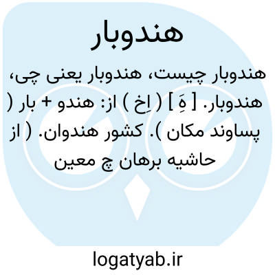 هندوبار. [ هَِ ] ( اِخ ) از: هندو + بار ( پساوند مکان ). کشور هندوان. ( از حاشیه برهان چ معین ). هندوستان. ( برهان ). جای هندوها: