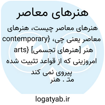 {contemporary arts} [هنرهای تجسمی] هنر امروزینی که از قواعد تثبیت شده پیروی نمی کند متـ. هنر معاصر
