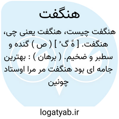 ( صفت ) ۱- ستر ضحیم کلفت. ۲- پارچ. کلفت و ضخیم: بهترین جامه ای بود هنگفت مر مرا اوستاد چونین گفت. ( حدیقه ) ۳- بسیار فراوان: مال هنگفت.