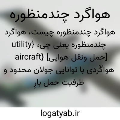{utility aircraft} [حمل ونقل هوایی] هواگَردی با توانایی جولان محدود و ظرفیت حمل بارِ مفید کم، برای انجام مأموریت های متنوع