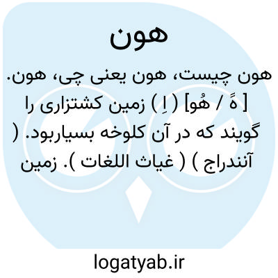 هون. [ هََ / هُو] ( اِ ) زمین کشتزاری را گویند که در آن کلوخه بسیاربود. ( آنندراج ) ( غیاث اللغات ). زمین شیارکرده کلوخ زار را گویند. ( برهان ). || زراعتی را نیز گفته اند که سنگ و کلوخ بسیار داشته باشد. ( برهان ).