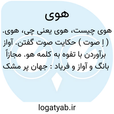 هوی. ( اِ صوت ) حکایت صوت گفتن. آواز برآوردن با تفوه به کلمه هو. مجازاً بانگ و آواز و فریاد: