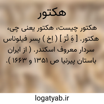 هکتور. [ هَِ تُرْ ] ( اِخ ) پسر فیلوناس سردار معروف اسکندر. ( از ایران باستان پیرنیا ص 1351 و 1663 ).