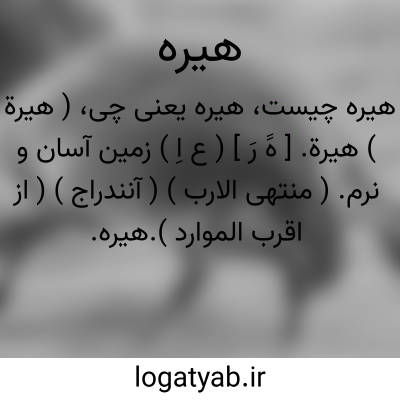 ( هیرة ) هیرة. [ هََ رَ ] ( ع اِ ) زمین آسان و نرم. ( منتهی الارب ) ( آنندراج ) ( از اقرب الموارد ).