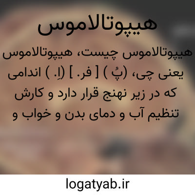 منطقه ای از مغز، واقع در زیر مخ. فعالیتِ موزونو ثبات فیزیولوژیکیبدن، از جمله توازن آب و درجه حرارت، را تنظیم می کند. این بخش تولید هورمونهای غدۀ هیپوفیزرا تنظیم، و بخشی از دستگاه عصبیرا کنترل می کند که مسئول ماهیچه های غیرارادیاست.