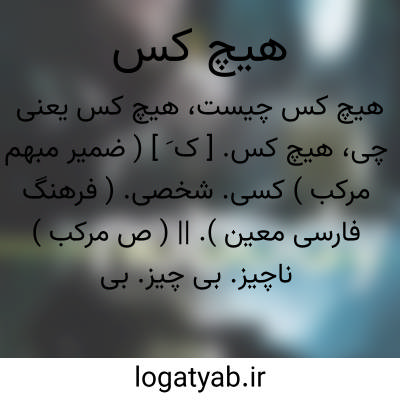 ۱. کلمۀ نفی که در نبودن کسی در جایی استعمال می شود: در این جا کیست؟ هیچ کس.