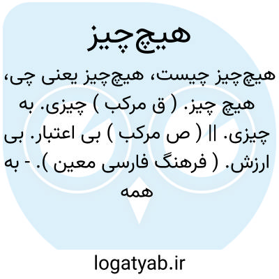 هیچ چیز. ( ق مرکب ) چیزی. به چیزی. || ( ص مرکب ) بی اعتبار. بی ارزش. ( فرهنگ فارسی معین ).