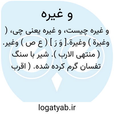 ( وغیرة ) وغیرة.[ وَ رَ ] ( ع ص ) وغیر. ( منتهی الارب ). شیر با سنگ تفسان گرم کرده شده. ( اقرب الموارد ) ( ناظم الاطباء ). || آب گرم. ( منتهی الارب ). رجوع به وغیر شود.