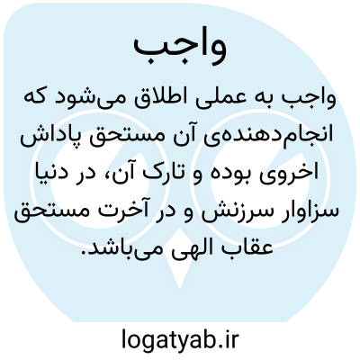 [ویکی اهل البیت] واجب به کارهایی می گویند که خداوند به انجامِ آنها امر فرموده است و انجام دادن آنها لازم است به طوری که اگر انجام نگیرد، عقوبت الهی و عذاب الهی را به دنبال دارد.
