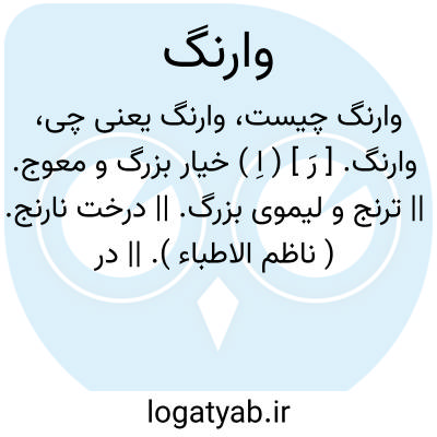 وارنگ. [ رَ ] ( اِ ) خیار بزرگ و معوج. || ترنج و لیموی بزرگ. || درخت نارنج. ( ناظم الاطباء ). || در ترکیب رنگ وارنگ کلمه به معنی رنگارنگ، رنگ بارنگ، رنگ رنگ است. || وارنگ در ترکیب وارنگ زدن، عکس، مخالف، مقابل، معنی میدهد: هر رنگی زدیم وارنگ آن را زد؛ یعنی مخالف آن رفتار کرد.