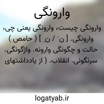 وارونگی. [ ن َ / ن ِ ] ( حامص ) حالت و چگونگی وارونه. واژگونگی. سرنگونی. انقلاب. ( از یادداشتهای مؤلف ).