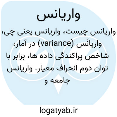 در آمار، شاخص پراکندگی داده ها، برابر با توان دوم انحراف معیار. واریانس جامعه و واریانس نمونه را به ترتیب با δ۲ و S۲ نمایش می دهند. واریانس نشان دهندۀ نحوۀ پراکندگی داده های آماری حول میانگین یا مقدار متوسط است.
