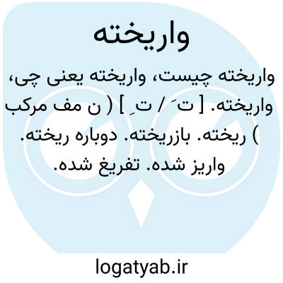 واریخته. [ ت َ / ت ِ ] ( ن مف مرکب ) ریخته. بازریخته. دوباره ریخته. واریز شده. تفریغ شده. تسویه شده. رجوع به واریختن شود. || جائی که شیب آن از یکسوست نه از چندسو. ( از یادداشتهای مؤلف ): شیروانی واریخته ( در اصطلاح بنایان ). ( از یادداشتهای مؤلف ).