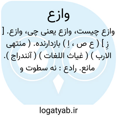 وازع. [ زِ ] ( ع ص، اِ ) بازدارنده. ( منتهی الارب ) ( غیاث اللغات ) ( آنندراج ). مانع. رادع: نه سطوت و صولت مانع آمد و نه شکر و عدت وازع توانست گشت. ( جهانگشای جوینی ). طایفه ای را قضای آسمانی از صلح وازع و زمره ای را هوای چنگیزخانی از محاربت مانع. ( جهانگشای جوینی ). در هر خانه بیگانه ای و در هر منزلی مولی نه خوف خالق وازع و نه ملامت و شرم از خلایق رادع. ( جهانگشای جوینی ). || زجرکننده. ( از اقرب الموارد ) ( آنندراج ) ( منتهی الارب ) ( ناظم الاطباء ). || سگ از آنرو که گرگ را از حشم بازمیدارد. ( از اقرب الموارد ) ( المنجد ). سگ بدان جهت که گرگ را ازگوسفند باز دارد. ( منتهی الارب ) ( آنندراج ) ( ناظم الاطباء ). || کسی که امور سپاه را اداره میکندو بلایا را از آنها دفع میکند. ( از منتهی الارب ). سالار لشکر مهتمم امورات آن. ( منتهی الارب ). سرهنگ و سالارلشکر. ( غیاث اللغات ) ( آنندراج ) ( ناظم الاطباء ). آن که در جلو صف می آید و اصلاح آن نموده و پیش و پس میکند. ( ناظم الاطباء ). || سلطان. ( غیاث اللغات )( ناظم الاطباء ). پادشاه بازدارنده از محارم او تعالی. ( منتهی الارب ). || حاکم. ( غیاث اللغات ). حاکم که مردم را از محارم بازدارد. ( ناظم الاطباء ).
