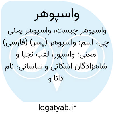 واسپوهر. ( اِ ) لقب نجبای اشکانی و ساسانی و صاحبان مناصب کشوری و لشکری آنان. کریستنسن گوید از ترکیبات پهلوی اشکانی است. این کلمه که ایده اوگرام آرامی آن بربیتا است تحریفی است از لفظ ویس پوهر به معنی پسر طایفه. لفظ مذکور در زبان هخامنشی هم دیده میشود. در زبان ارمنی هم ویس پوهر هست و هم «واسپوهر» و هر دو در آن لغت دخیل هستند و این در صورتی است که لفظ سپوه ارمنی واقعاً ویس پوهر ایرانی باشد اما کلمه واسپوهر در ترکیب کلمه وسپورکان که نام یکی از ایالات است دیده میشود از این گذشته درباره دو لفظ «ویسپوهر» و «واسپوهر» بحث بسیار کرده اند. «شدر» ثابت می کند که هر دو کلمه که پهلوی اشکانی میباشند در تمام دوره اشکانی و ساسانی وجود داشته اند و مراد از کلمه «ویس پوهر» پسر ویس پتی یاویس بذ ( رئیس طایفه ) نبوده است، بلکه این لفظ دارای ارزش اجتماعی بیشتری شده بود و شاهزادگان خانواده شاهی را بدان می نامیدند. اما لفظ واسپوهر در مورد اعضای طبقه نژادگان و نجبای درجه اول به کار میرفت معذلک در متن پهلوی سورسخون ( ترجمه ناوادیا ) بی شک لفظ «پس ی واسپوهر» همچنانکه ناوادیا دریافته است به معنای «ولیعهد» به کار رفته است. شدر معتقد است و اسپوهر در اینجا لقب نیست بلکه ستایش و توصیف است و مراد از آن «فرزند والاگهر» شاهنشاه است که در عبارت قبل از او نام برده اند. اما این تعبیر این سؤال را بی جواب میگذارد چرا بر ولیعهد «پس ی واسپوهر» ( فرزند والاگهر» نام نهاده اند نه «پس ی ویس پوهر» ( شهزاده پسر ). بهر حال لفظ ویس پوهر بشکل ایرانی خود یعنی بی آنکه در پس ایده اوگرام آرامی نهفته باشد فقط در متون مانوی تورفان دیده میشود. شدر بر آن است که این کلمه را در زبان سغدی با تغییر مختصری بصورت ویس پوس باز یافته است ولی هنینگ ( در رسالات اکادمی پروسی 1937 کتاب دعای مانوی ص 73 ) بر این ادعا خرده گرفته است. از طرف دیگر باید دانست که متون مانوی لغات و اصطلاحات را بصورت مصطلح در آغاز دوره ساسانی نشان میدهند و در آنزمان فرقی که اشکانیان بین دو لفظ ویس پوهر و واسپوهر میگذاشتند هنوز از یاد نرفته بود ولی ظاهراً ما در ادبیات پهلوی اواخر دوره ساسانی مثالی از موارد استعمال لفظ وپسپوهر نداریم. به این جهت من گمان میکنم که قبل از پایان این دوره لفظ ویسپوهر فراموش شده و اصطلاح واسپوهر جای آن را گرفته بود. ( ایران در زمان ساسانیان ص 120 ). و رجوع به ص 123 و 283 همان کتاب شود.
