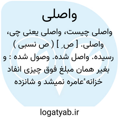 واصلی. [ ص ِ ] ( ص نسبی ) رسیده. واصل شده. وصول شده: و بغیر همان مبلغ فوق چیزی انفاد خزانه ٔعامره نمیشد و شانزده یک از وجه واصلی سر کار خاصه شریفه در وجه معیرالممالک از قدیم الایام الی الاَّن مقرر و مستمر است. ( تذکرة الملوک چ دبیرسیاقی ص 24 ).