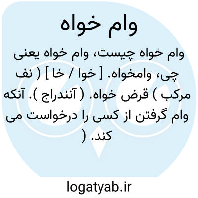 وامخواه. [ خوا / خا ] ( نف مرکب ) قرض خواه. ( آنندراج ). آنکه وام گرفتن از کسی را درخواست می کند. ( ناظم الاطباء ). آنکه وام گرفتن خواهد.که از کسی وام دادن خواهد. ( یادداشت مرحوم دهخدا ). || مطالب. خواهنده. طلب کننده: