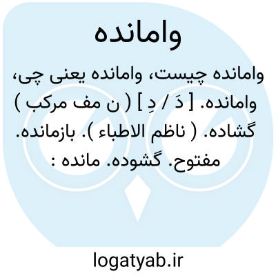 وامانده. [ دَ / دِ ] ( ن مف مرکب ) گشاده. ( ناظم الاطباء ). بازمانده. مفتوح. گشوده. مانده: عین جاحمه؛ چشم وامانده. ( منتهی الارب ). || خسته. مانده. درنگی کرده. ( ناظم الاطباء ). بستوه آمده. ( آنندراج ). که از بسیاری رفتن یا گرانی بار به پیش رفتن نتواند. خسته شده. ( یادداشت مرحوم دهخدا ).