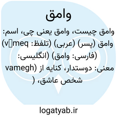 معنی: دوستدار، کنایه از شخص عاشق، ( اَعلام ) وامق طرفِ عشق عذرا در داستان وامق و عذرا که در زمان انوشیروان رواج داشته است، نام مردی که عاشق عذرا بود