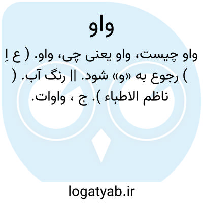 واو. ( ع اِ ) رجوع به «و» شود. || رنگ آب. ( ناظم الاطباء ). ج، واوات.