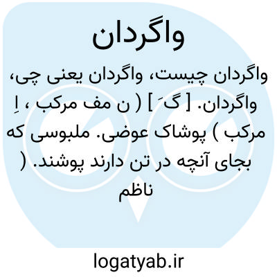واگردان. [ گ َ ] ( ن مف مرکب، اِ مرکب ) پوشاک عوضی. ملبوسی که بجای آنچه در تن دارند پوشند. ( ناظم الاطباء ). کن و واکن. جامه ای به ذخیره که جامه پوشیده را بدل باشد. جامه ای جز آن که بر تن دارند که چون این شوخ گیردآن دیگری را پوشند. جامه نهاده برای بدل کردن جامه ای که در تن دارند. ( یادداشت مؤلف ). واشور. واشو.