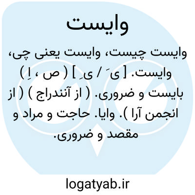 وایست. [ ی َ / ی ِ ] ( ص، اِ ) بایست و ضروری. ( از آنندراج ) ( از انجمن آرا ). وایا. حاجت و مراد و مقصد و ضروری. ( از برهان ). چیزهای بایستی. دروایست. دربایست.مایحتاج. ( از یادداشت های مرحوم دهخدا ):