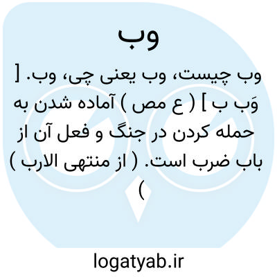وب. [ وَب ب ] ( ع مص ) آماده شدن به حمله کردن در جنگ و فعل آن از باب ضرب است. ( از منتهی الارب ) ( آنندراج ). مهیا شدن جنگ را.