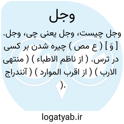 وجل. [ وَ ج َ ] ( ع مص ) مَوجَل. ترسیدن. ( منتهی الارب ) ( از اقرب الموارد ) ( آنندراج ) ( ترجمان علامه جرجانی ترتیب عادل بن علی ) ( ناظم الاطباء ). || ( اِ ) خوف. ( اقرب الموارد ). ترس وبیم. ج، اوجال. ( از اقرب الموارد ). گویند: فی قلبه وجل و فی قلوبهم اوجال. ( اقرب الموارد ):