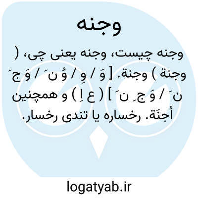 ( وجنة ) وجنة. [ وَ / وِ / وُ ن َ / وَ ج َ ن َ / وَ ج ِ ن َ ] ( ع اِ ) و همچنین اُجنَة. رخساره یا تندی رخسار. ( منتهی الارب ). و در آن پنج لغت آمده است. ( منتهی الارب ) ( آنندراج ) ( غیاث اللغات ). افراز رخ. ( مهذب الاسماء ). برآمدگی از دوگونه رخسار. ( اقرب الموارد ). جزء برآمده از رخسار و به اصطلاح تشریح،آن استخوان از استخوانهای صورت که در زیر چشم واقع شده و برآمدگی رخسار از وی میباشد. ( ناظم الاطباء ).
