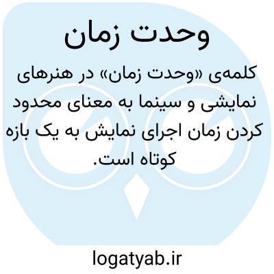 {unity of time} [سینما و تلویزیون، هنرهای نمایشی] یکی از وحدت های سه گانۀ نظام نمایش ارسطویی که براساس آن زمان اجرای نمایش به یک روز یا دو تا سه ساعت محدود می شود