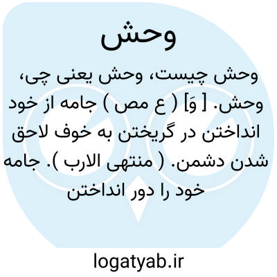 وحش. [ وَ] ( ع مص ) جامه از خود انداختن در گریختن به خوف لاحق شدن دشمن. ( منتهی الارب ). جامه خود را دور انداختن در گریختن از ترس دشمن. ( ناظم الاطباء ). || ( ص ) گرسنه: بات وحشاً؛ گرسنه شب گذاشت. و بتنا اوحاشاً؛ ای جیاعاً. || جانور دشتی. وحشی یکی آن. ج، وحوش. وُحشان. ( منتهی الارب ) ( ناظم الاطباء ).