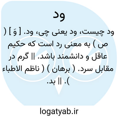 ود. [ وَ ] ( ص ) به معنی رد است که حکیم عاقل و دانشمند باشد. || گرم در مقابل سرد. ( برهان ) ( ناظم الاطباء ). || بد. مقابل خوب. ( فرهنگ فارسی معین ).