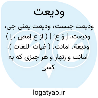 ( اسم ) ودیعه: ورازی که بمنزل. ودیعتی سپرده باشند محافظت آن از اوصاف کرم... یا ودیعت حیات. زندگانی که بمنزل. امانتی است از طرف حق تعالی: وپاینده سلطان برلاس در آنجا ودیعت حیات مستعار باز سپرد. )