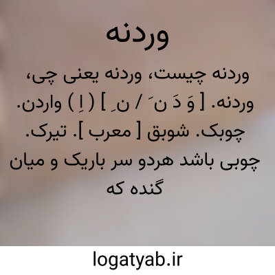 وردنه. [ وَ دَ ن َ / ن ِ ] ( اِ ) واردن. چوبک. شوبق [ معرب ]. تیرک. چوبی باشد هردو سر باریک و میان گنده که خمیر نان را بدان پهن سازند. ( ناظم الاطباء ) ( برهان ). تیر رشته بری. نفروج. ( ناظم الاطباء ). نغروج. ( ناظم الاطباء ). محلاج. مرقاق. ( یادداشت مرحوم دهخدا ). مطلمه. ( یادداشت مؤلف ). نورد. ( فرهنگ فارسی معین ). || چوبی که چرخ بر آن کنند و به عربی محور خوانند. ( برهان ) ( ناظم الاطباء ). چوبی که چرخ دور آن گردد. ( فرهنگ فارسی معین ).