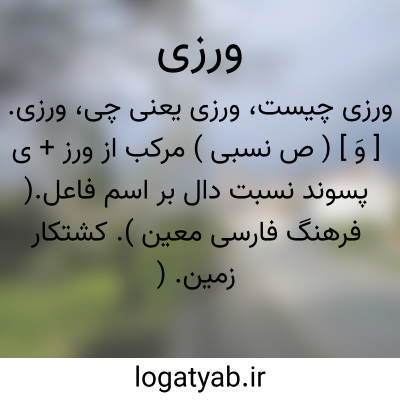 ورزی. [ وَ ] ( ص نسبی ) مرکب از ورز + ی پسوند نسبت دال بر اسم فاعل.( فرهنگ فارسی معین ). کشتکار زمین. ( ناظم الاطباء ). مزارع. ( آنندراج ) ( برهان ). برزگر. کشاورز. ورزگر. ( انجمن آرا ). برزگر. ( انجمن آرا ). زراعت کننده. ( آنندراج ) ( برهان ). || کارگر و مزدور. ( ناظم الاطباء ). || ( حامص ) در ترکیبات ذیل مزید مؤخر آید: آب ورزی، دادورزی، خیانت ورزی، مهرورزی، کشاورزی.