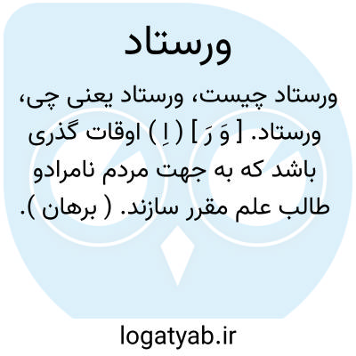 ورستاد. [ وَ رَ ] ( اِ ) اوقات گذری باشد که به جهت مردم نامرادو طالب علم مقرر سازند. ( برهان ). وظیفه و مقرری و مدد معاش که برای مردم طالب علم برقرار میکنند. ( ناظم الاطباء ). وظیفه. ( برهان ) ( دهار ) ( ناظم الاطباء ). وظیفه مقرر که بدان اوقات گذر کنند. وظیفه ای که برای مستحقان برقرار کنند. ( انجمن آرای ناصری ):