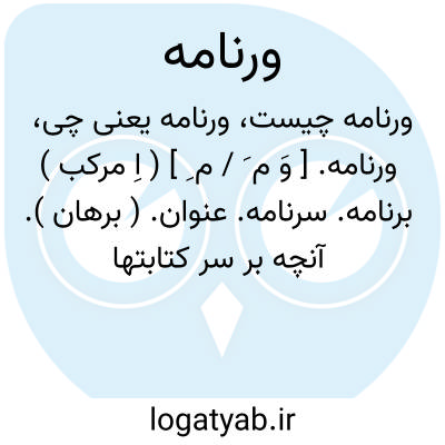 ورنامه. [ وَ م َ / م ِ ] ( اِ مرکب ) برنامه. سرنامه. عنوان. ( برهان ). آنچه بر سر کتابتها نویسند که به شرف مطالعه فلان برسد. ( برهان ):